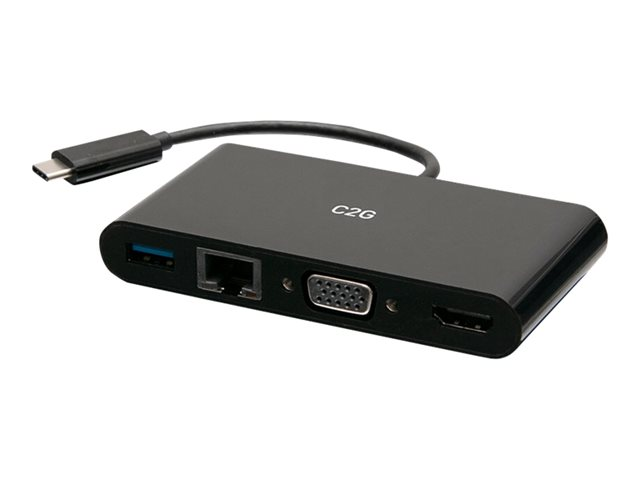 C2G USB C to HDMI, VGA, USB A, Ethernet Adapter - 4K 30Hz - Black - Station d'accueil - USB-C / Thunderbolt 3 - VGA, HDMI - 1GbE