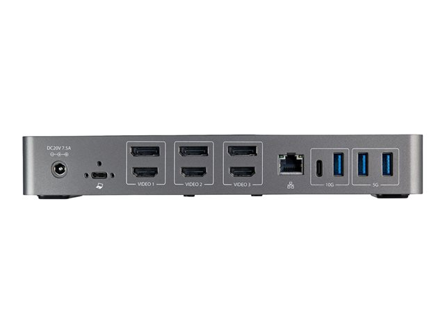 | Interfaces | 3 x USB 3.1 Gen 2 - USB 9 broches type A 1 x USB-C 3.1 Gen 2 - 24 pin USB-C 1 x USB-C 3.1 Gen 1 (uniquement données) - 10 broches USB-C 3 x affichage / vidéo - HDMI de 19 broches de type A 1 x réseau - 10Base-T/100Base-TX/1000Base-T - RJ-45 3 x affichage / vidéo - DisplayPort 20 broches 1 x combo jack microphone/casque - mini-phone 3,5 mm 1 x USB-C 3.0 - 24 pin USB-C 1 x SuperSpeed USB 3.0 - USB 9 broches type A |