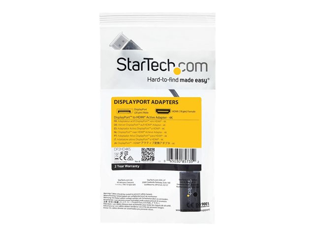 StarTech.com Adaptateur audio / vidéo DisplayPort 1.2 vers HDMI - Convertisseur actif DP vers HDMI - M/F - 4K 30 Hz - Noir - Convertisseur vidéo - DisplayPort - HDMI - pour P/N: DKM30CHDPD, DKM30CHDPDUE, SV231QDPU34K, TB3CDK2DP, TB3CDK2DPUE, TB3DKM2DPL
