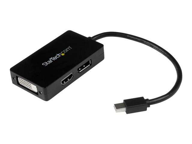 StarTech.com Adaptateur de voyage Mini DisplayPort vers DVI / DisplayPort / HDMI - Convertisseur vidéo Mini DP 3-en-1 - Noir - Adaptateur vidéo - Mini DisplayPort mâle pour DVI-D, HDMI, DisplayPort femelle - 15 cm - noir