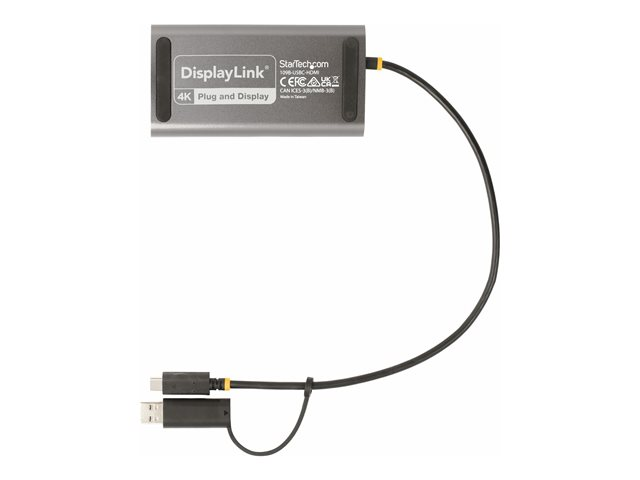 StarTech.com USB-C to Dual-HDMI Adapter, USB-C or A to 2x HDMI, 4K 60Hz, 100W PD Pass-Through, 1ft (30cm) Built-in Cable, External Video Graphics Adapter - USB to HDMI Multi-Monitor Converter for Laptop (109B-USBC-HDMI) - Adaptateur vidéo - Conformité TAA - USB type A, 24 pin USB-C mâle pour 2 x 19 pin HDMI Type A, 24 pin USB-C femelle - 30 cm - gris - support 4K, actif