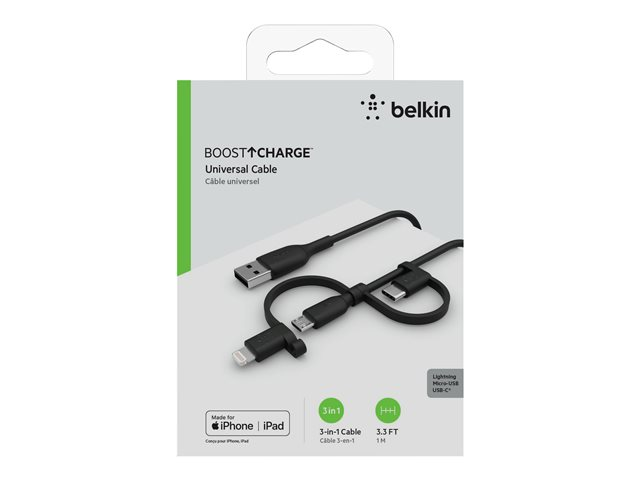Belkin BOOST CHARGE Universal - Câble USB - USB mâle pour Micro-USB de type B, Lightning, 24 pin USB-C mâle - 1 m CAC001BT1MBK