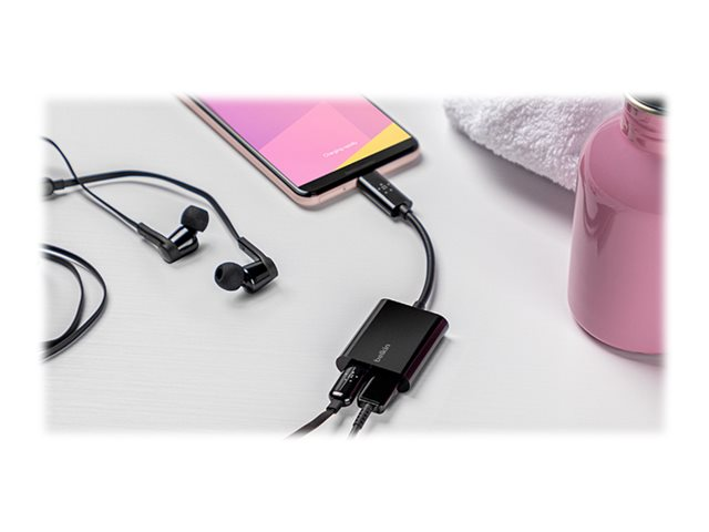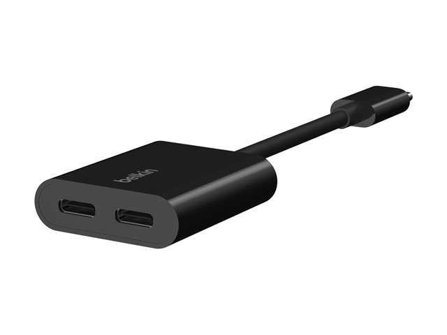 Belkin Connect Audio + Charge - Casque/adaptateur de charge USB-C vers USB-C - 24 pin USB-C mâle pour 24 pin USB-C femelle - 14 m - noir - USB Power Delivery (60W)