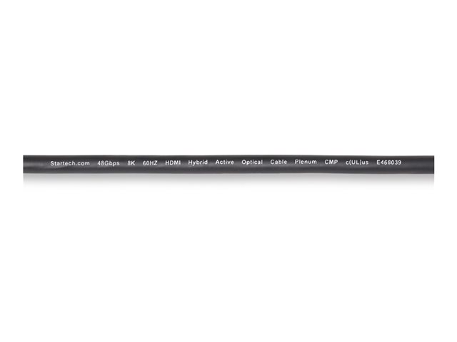 StarTech.com 30ft (9.1m) HDMI 2.1 Hybrid Active Optical Cable (AOC), CMP, Plenum Rated, Ultra High Speed HDMI Fiber Optic Cable, 48Gbps, 8K 60Hz/4K 120Hz, HDR10+/FRL/TMDS/eARC - CMP In Wall HDMI 2.1/2.0 Cord (8K-A-30F-HDMI-CABLE) - Ultra High Speed - câble HDMI - HDMI mâle pour HDMI mâle - 9.1 m - cuivre hybride/fibre optique - noir - Active Optical Cable (AOC), support 4K 120 Hz, support pour 8K60Hz, support pour 4K60Hz 8K-A-30F-HDMI-CABLE