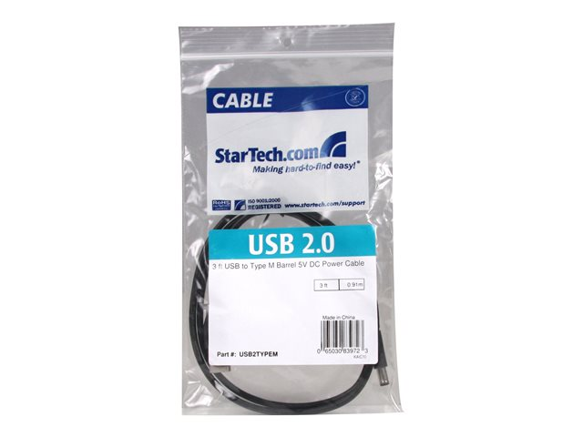StarTech.com Câble d'alimentation USB vers prise DC de 91 cm - Cordon USB vers connecteur Type M 5V - Câble d'alimentation - USB (alimentation uniquement) (M) pour prise CC 5,5 mm (M) - 91 cm - moulé - noir - pour P/N: DVI2VGACON, SPDIF2AA, ST122LE, ST122LEA, ST122PROA USB2TYPEM