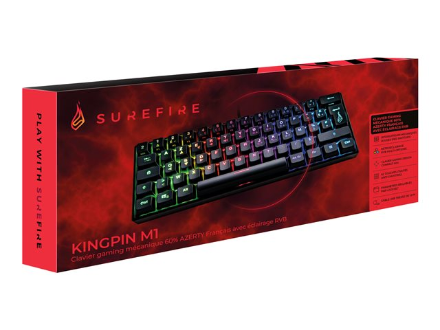 SureFire KingPin M1 - Clavier - 60% - backlit - USB - AZERTY - Français - commutateur : interrupteur rouge - boîte