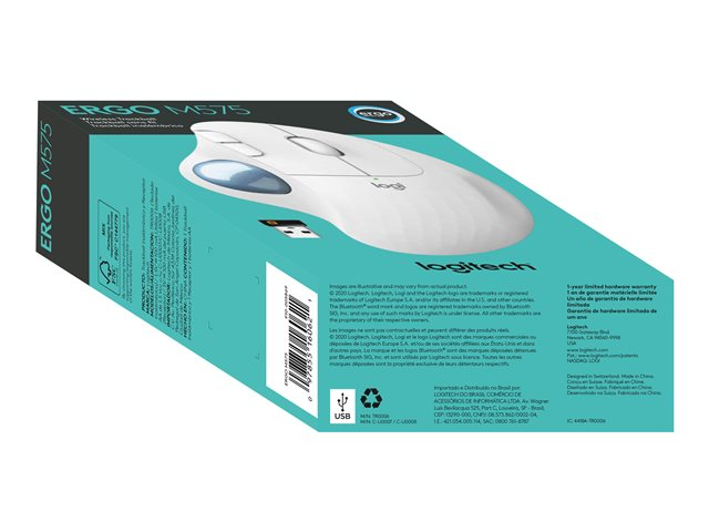 Logitech Ergo Series ERGO M575 - Boule de commande - optique - 5 boutons - sans fil - 2.4 GHz, Bluetooth 5.0 LE - récepteur sans fil USB - blanc cassé