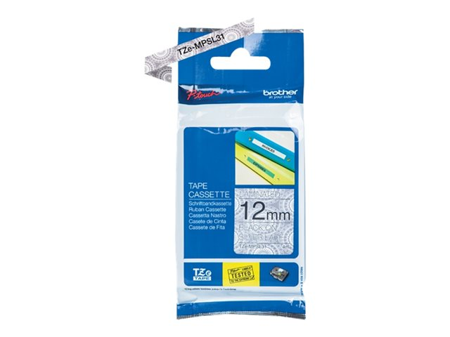 Brother TZe-MPSL31 - Noir sur dentelle argentée - Rouleau (1,2 cm x 4 m) 1 cassette(s) ruban laminé - pour Brother PT-H110; P-Touch Cube PT-P300; P-Touch Cube Pro PT-P910; P-Touch Embellish PT-D215