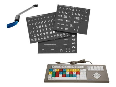 Le kit d'accessibilité HP comprend des autocollants personnalisés en braille et tactiles, une poignée d'accessibilité et le clavier BigKeys LX pour une solution unique qui facilite l'interaction des personnes handicapées avec les imprimantes multifonction et scanners HP.