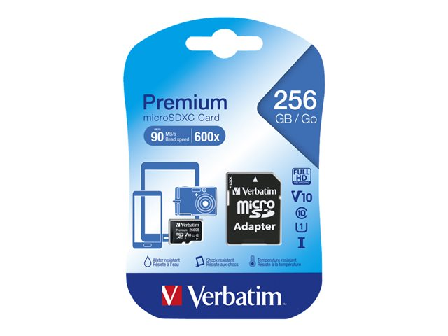 Verbatim Premium - Carte mémoire flash (adaptateur SD inclus(e)) - 256 Go - UHS Class 1 / Class10 - microSDXC UHS-I