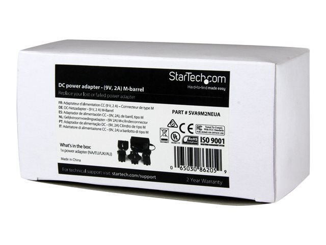 StarTech.com Universal Replacement Power Adapter - DC 9 Volts, 2 Amps Power Adapter (SVA9M2NEUA) - Adaptateur secteur - CA 100-240 V - pour P/N: RS232EXTC1, RS232EXTC1EU, RS232EXTC1GB, SV1631DUSBUK, SV565DUTPU, SV565UTPUEU SVA9M2NEUA