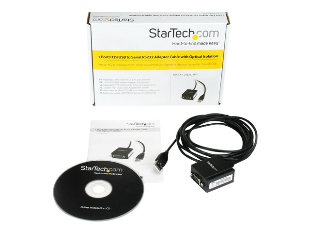 StarTech.com Cable adaptateur FTDI USB vers serie RS232 1 port avec isolation optique - Adaptateur série - USB - RS-232 - noir ICUSB2321FIS