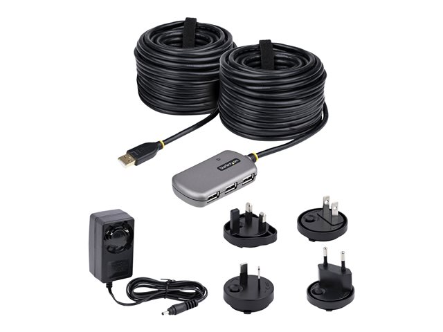 StarTech.com USB Extender Hub, 24m USB 2.0 Extension Cable with 4-Port USB Hub, Active/Bus Powered USB Repeater Cable, Optional 10W Power Supply Included - USB-A Hub w/ ESD Protection (U02442-USB-EXTENDER) - Concentrateur (hub) - 4 x USB 2.0