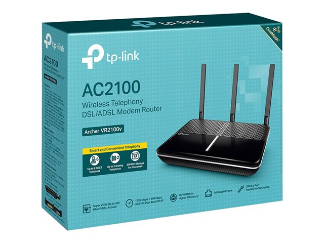 TP-Link Archer VR2100v V1 - - routeur sans fil - - modem ADSL commutateur 4 ports - 1GbE - ports WAN : 2 - Wi-Fi 5 - DECT - Bi-bande - adaptateur de téléphone VoIP (DECT)