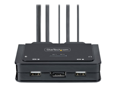 Ce commutateur KVM hybride permet aux utilisateurs de basculer entre un ordinateur de bureau compatible USB Type-A et DisplayPort et un ordinateur portable compatible USB Type-C (DP Alt-Mode), afin de partager un clavier, une souris, des périphériques d'E/S audio et un seul moniteur DisplayPort 4K 60Hz.