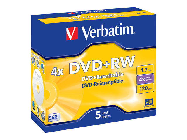 Verbatim DataLifePlus - 5 x DVD+RW - 4.7 Go 4x - boîtier CD 43229